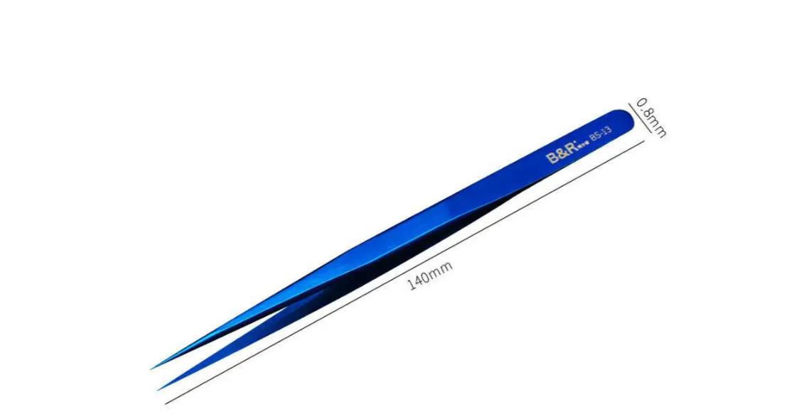 Прецизійний пінцет призначений для ремонту мобільних телефонів, електроніки та роботи з дрібними компонентами. Пряма форма та загострений кінчик забезпечують точне захоплення елементів під час монтажу та демонтажу. Виготовлений із загартованої нержавіючої сталі, пінцет має підвищену зносостійкість та стійкість до корозії, вологи й хімічних впливів. Підходить для використання в сервісних центрах, майстернях та для домашнього застосування.