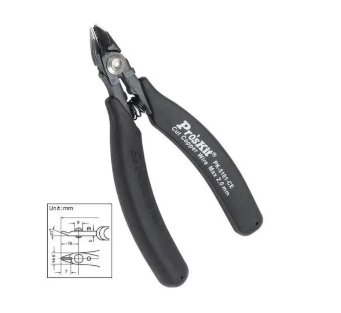 Бокорізи Pro'sKit 1PK-5101CE - це прецизійний ручний інструмент, призначений для точних робіт з електронікою, монтажу та обслуговування плат високої щільності. Інструмент забезпечує акуратне та чисте перекушування мідних дротів діаметром до 2,0 мм. Виготовлені зі сталі S50C із твердістю 50 HRC, що гарантує зносостійкість і тривалий термін служби. Пружинний механізм знижує навантаження на кисть під час тривалої роботи, а вбудований запобіжник підвищує безпеку зберігання та транспортування. Нікельоване покриття губок забезпечує захист від корозії та стабільну роботу інструменту. Компактний розмір дозволяє використовувати бокорізи в обмеженому просторі, що робить їх оптимальним вибором для сервісних центрів, майстерень та домашнього використання.
